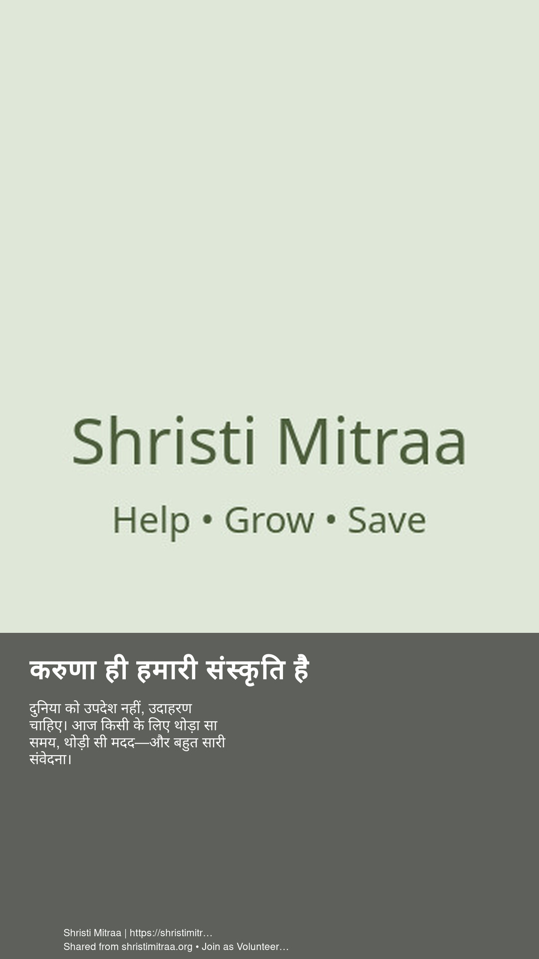 Compassion is our culture करुणा ही हमारी संस्कृति है