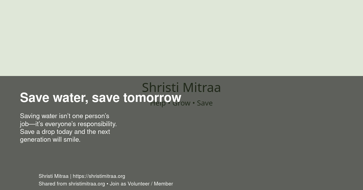 Saving water isn’t one person’s job—it’s everyone’s responsibility. Save a drop today and the next generation will smile.