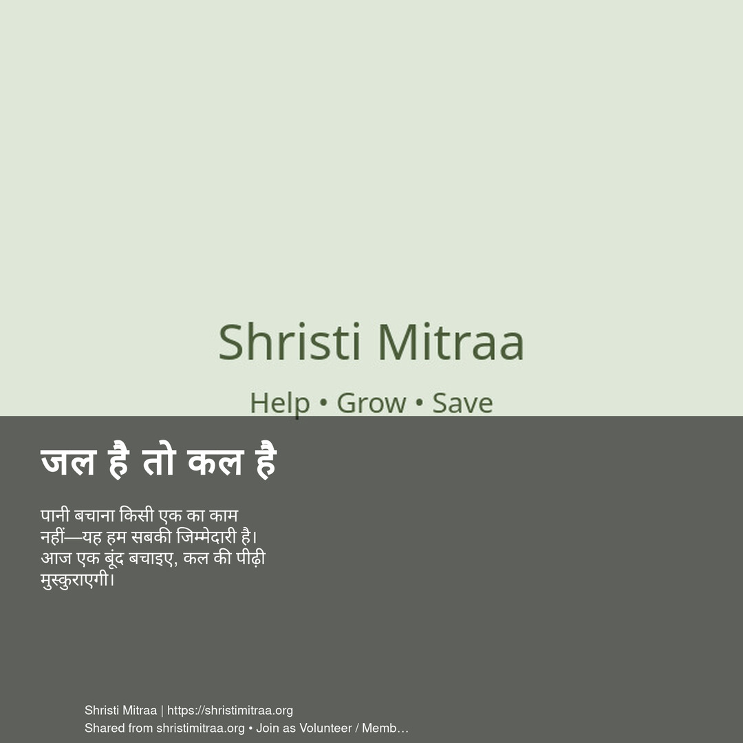 पानी बचाना किसी एक का काम नहीं—यह हम सबकी जिम्मेदारी है। आज एक बूंद बचाइए, कल की पीढ़ी मुस्कुराएगी।