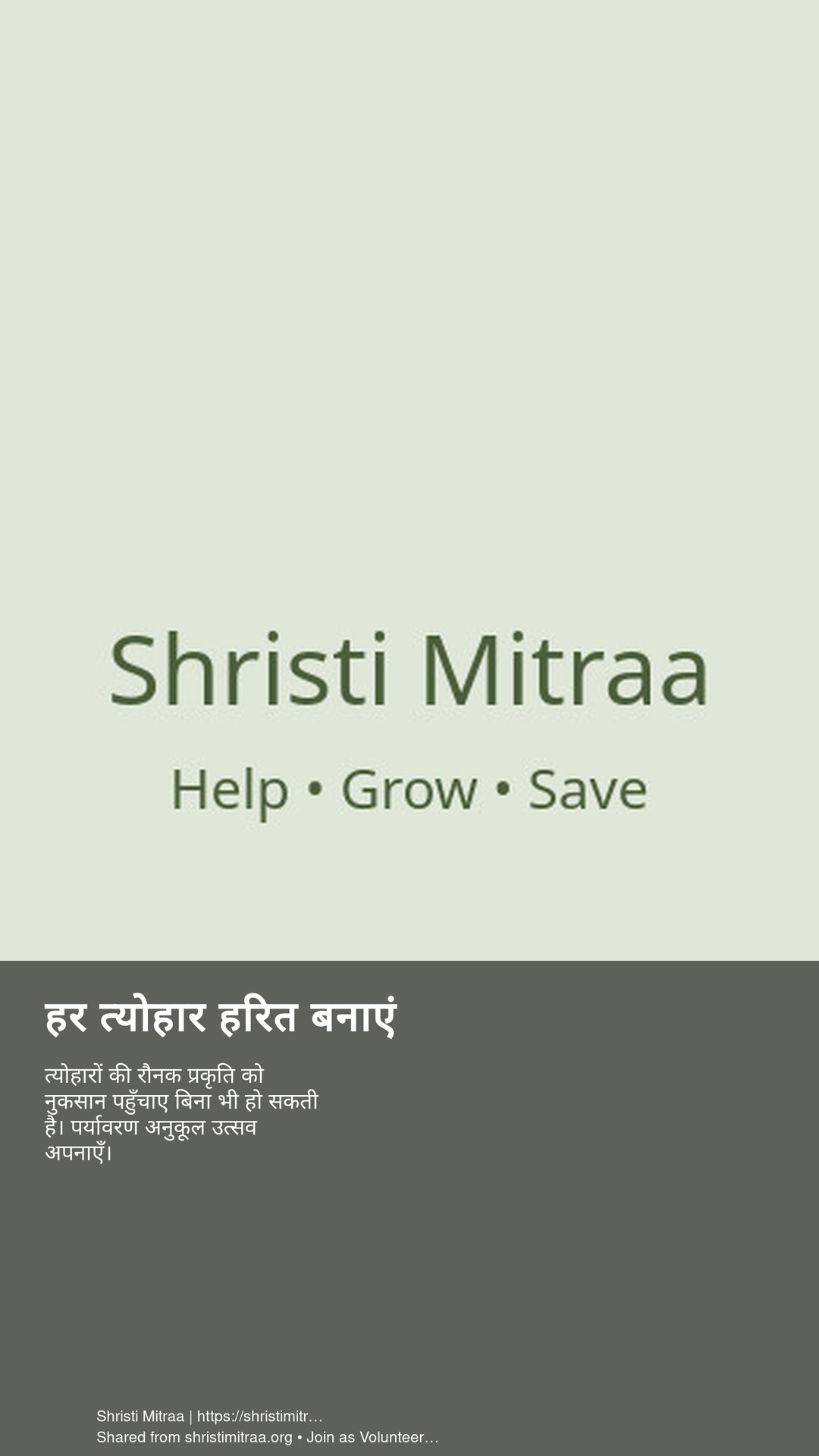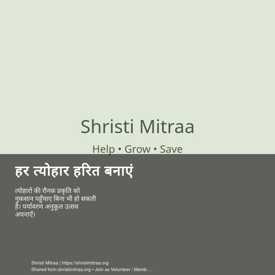 Celebrate green festivals हर त्योहार हरित बनाएं