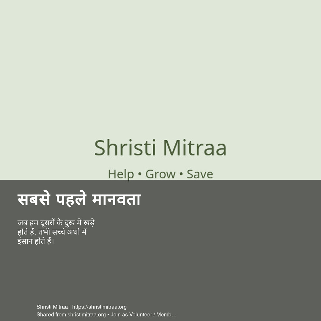 जब हम दूसरों के दुख में खड़े होते हैं, तभी सच्चे अर्थों में इंसान होते हैं।