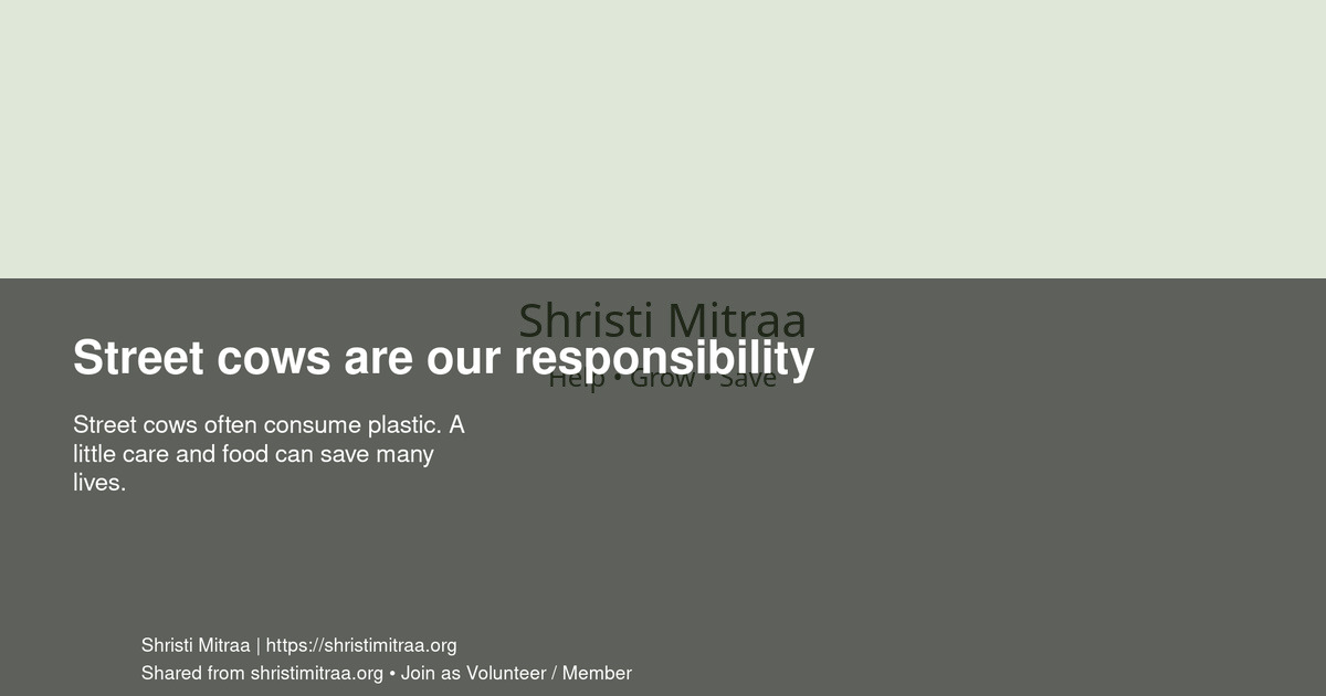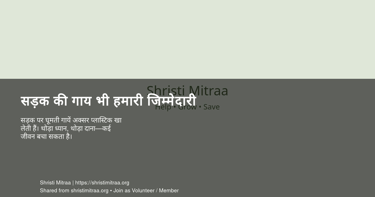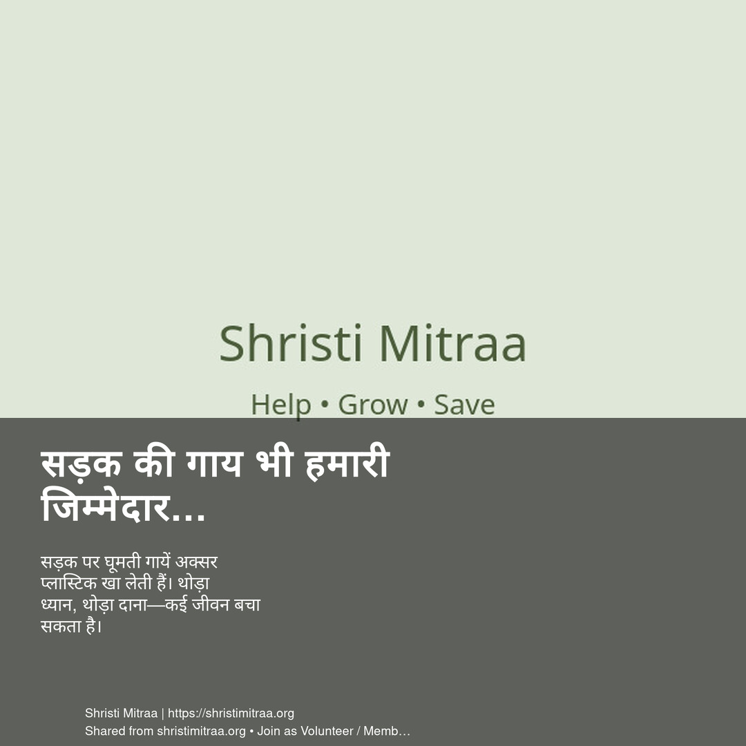 सड़क पर घूमती गायें अक्सर प्लास्टिक खा लेती हैं। थोड़ा ध्यान, थोड़ा दाना—कई जीवन बचा सकता है।