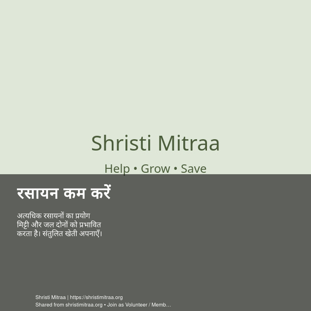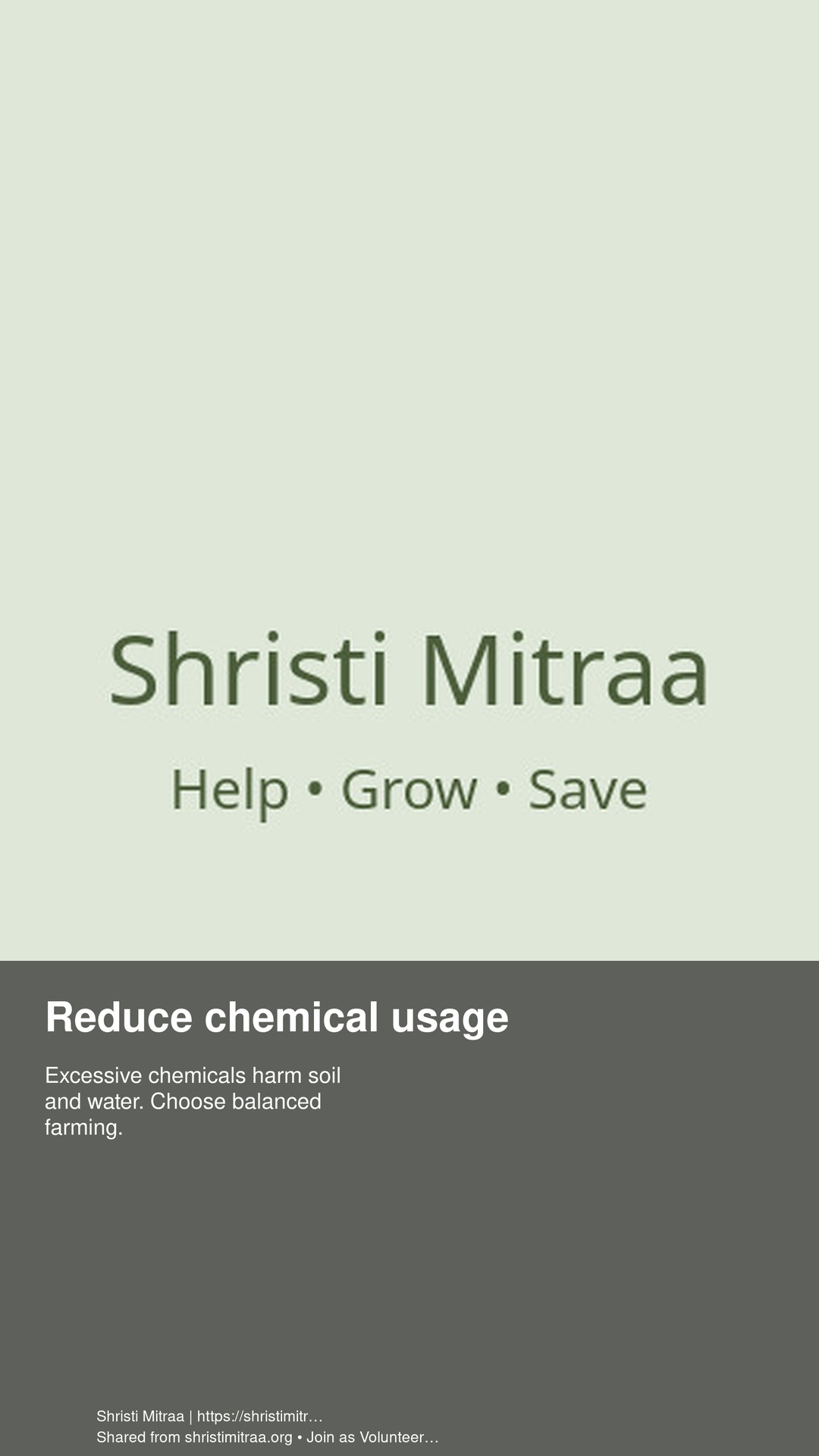 Excessive chemicals harm soil and water. Choose balanced farming.