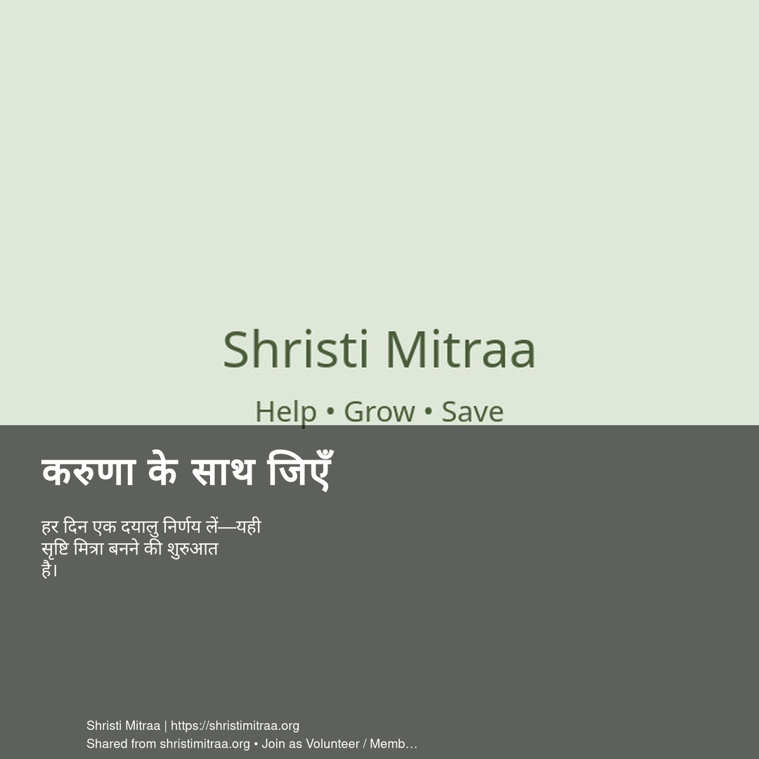 हर दिन एक दयालु निर्णय लें—यही सृष्टि मित्रा बनने की शुरुआत है।
