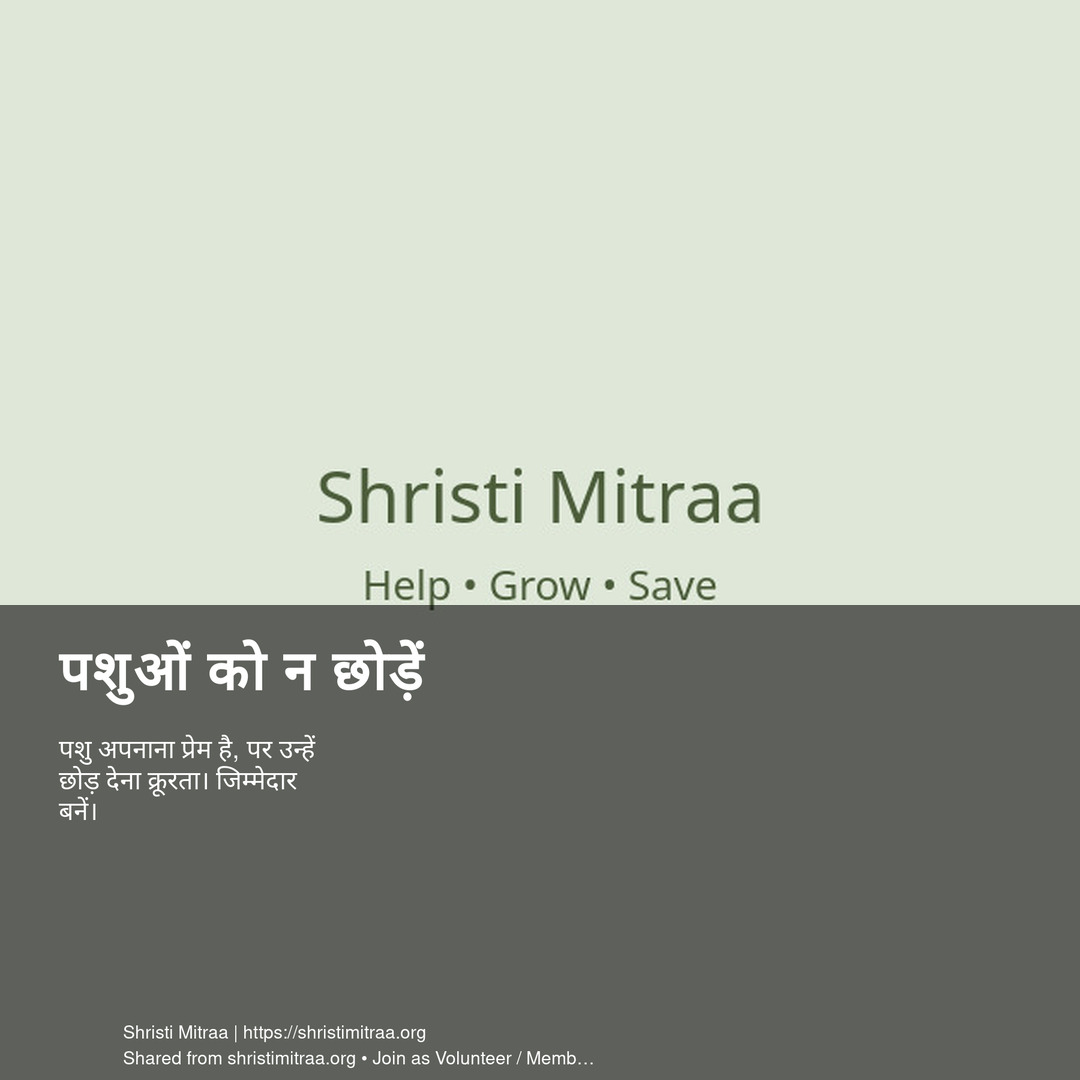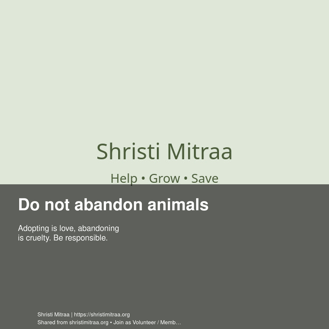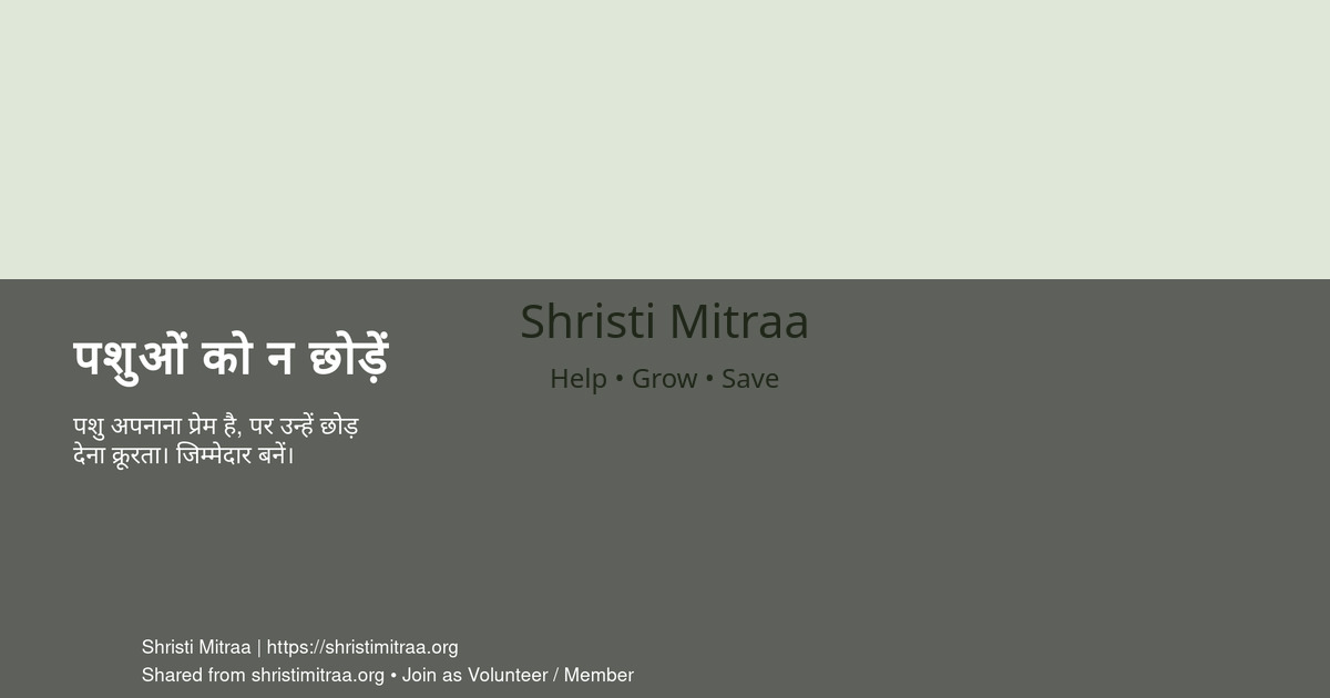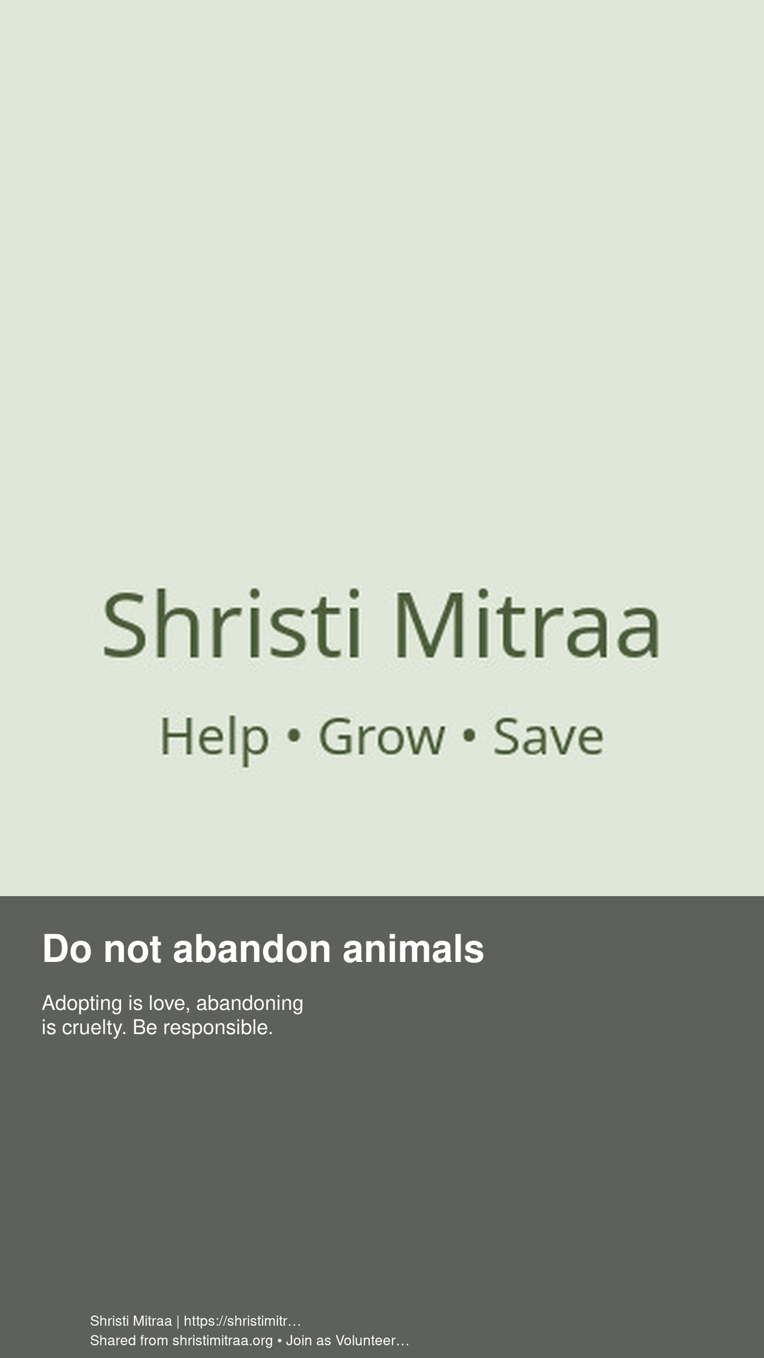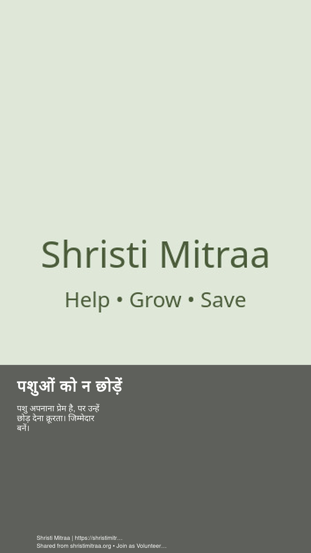 पशु अपनाना प्रेम है, पर उन्हें छोड़ देना क्रूरता। जिम्मेदार बनें।