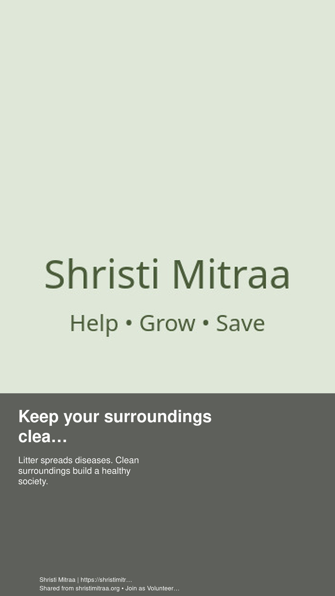 Litter spreads diseases. Clean surroundings build a healthy society.