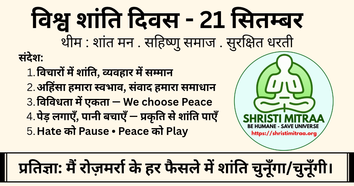 Today is September 21st—International Day of Peace—reminding us that peace is not something far away, but the result of challenges and small decisions… आज 21 सितम्बर है — अंतरराष्ट्रीय शांति दिवस हमें याद दिलाता है कि शांति कोई दूर की चीज़ नहीं है, बल्कि हमारे दैनिक जीवन में हमारे विचारों, भाषाओं और क…