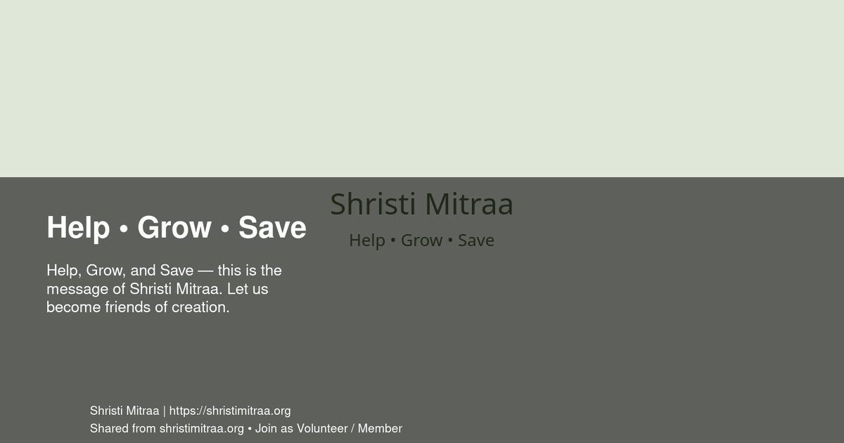 Help, Grow, and Save — this is the message of Shristi Mitraa. Let us become friends of creation.