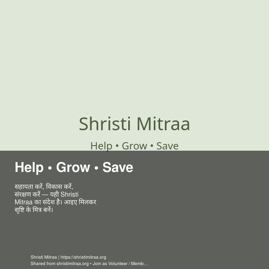 सहायता करें, विकास करें, संरक्षण करें — यही Shristi Mitraa का संदेश है। आइए मिलकर सृष्टि के मित्र बनें।