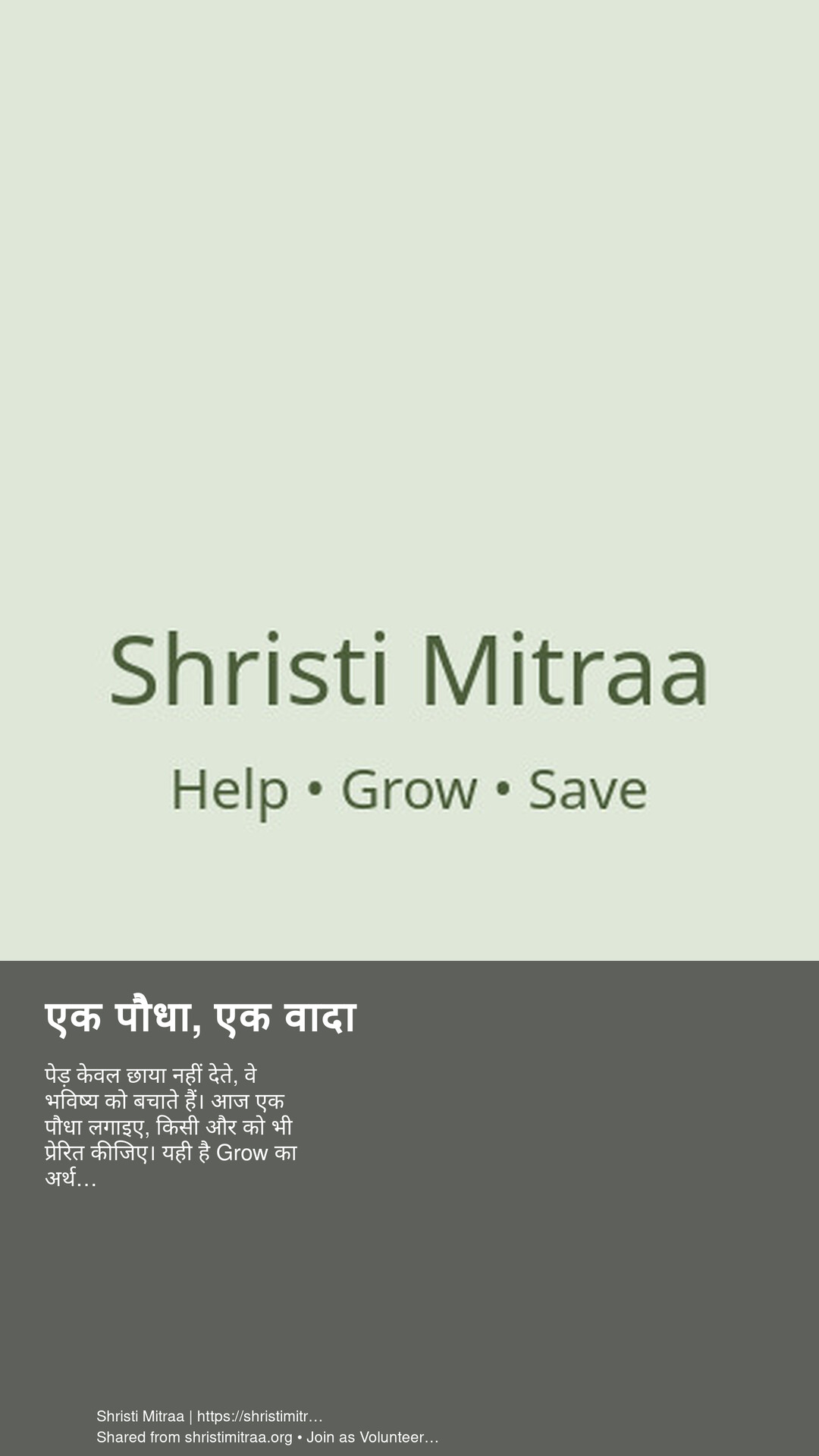 पेड़ केवल छाया नहीं देते, वे भविष्य को बचाते हैं। आज एक पौधा लगाइए, किसी और को भी प्रेरित कीजिए। यही है Grow का अर्थ।