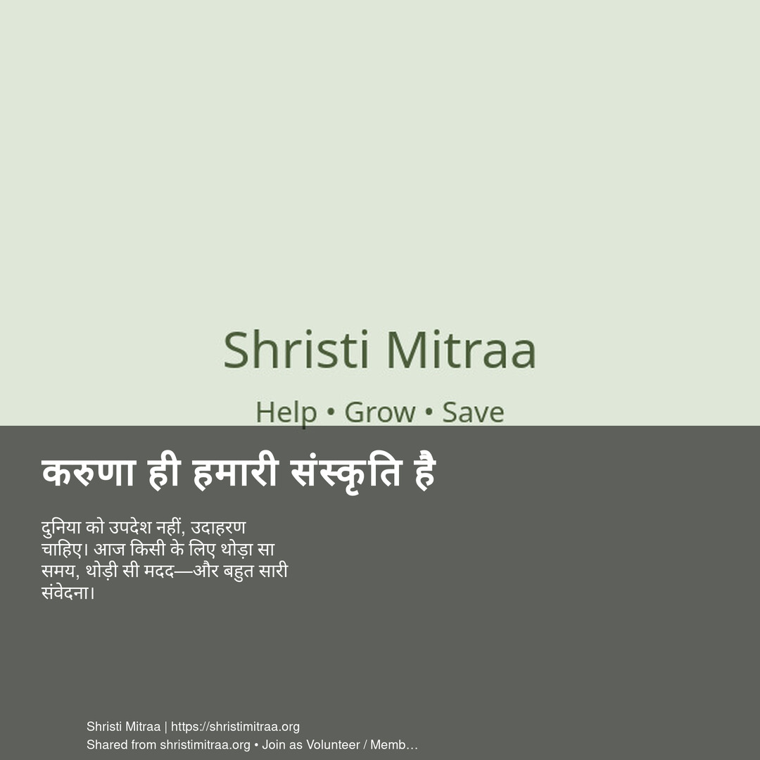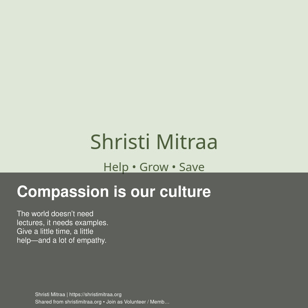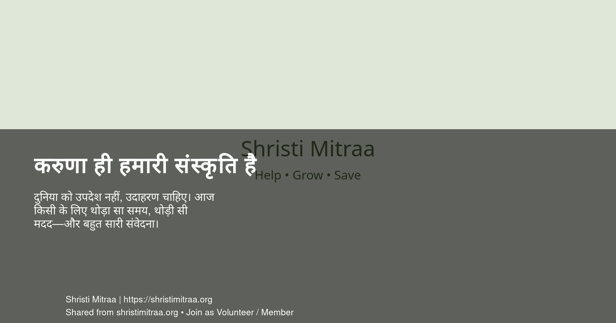 Compassion is our culture करुणा ही हमारी संस्कृति है