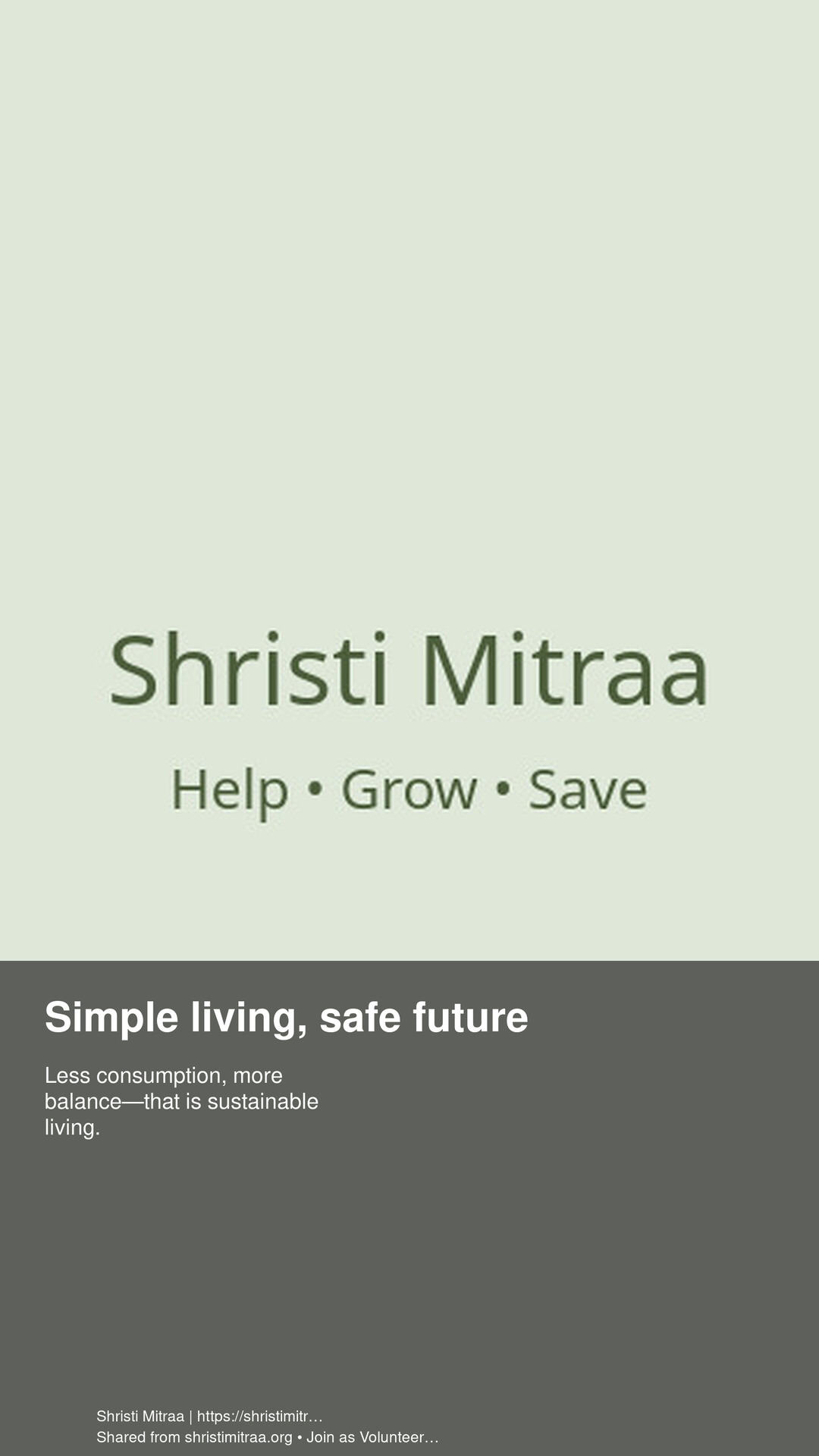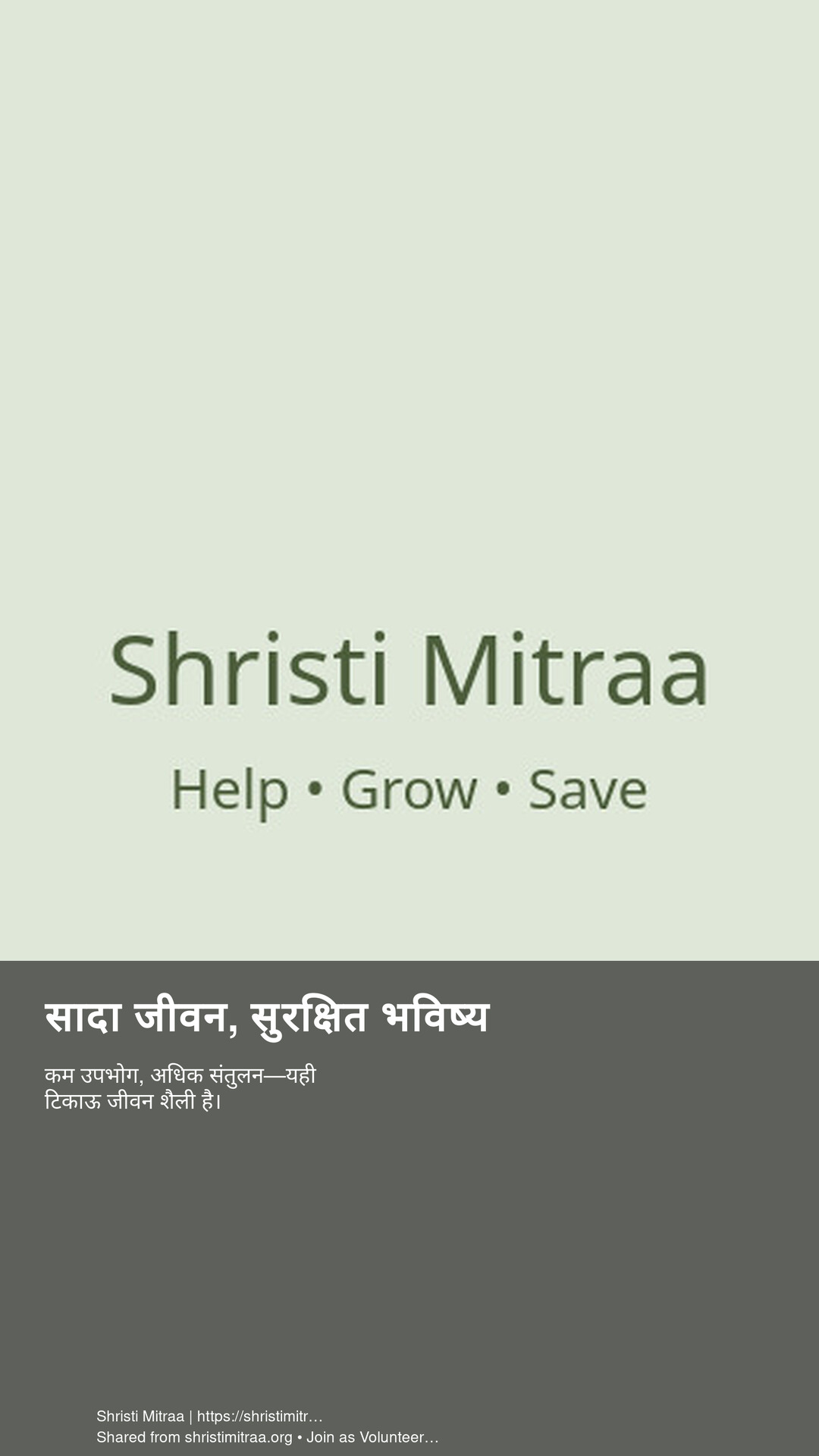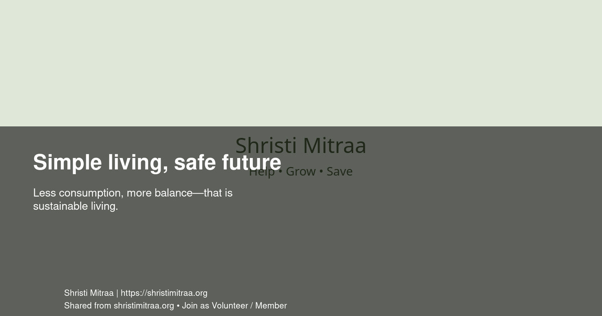 Simple living, safe future सादा जीवन, सुरक्षित भविष्य