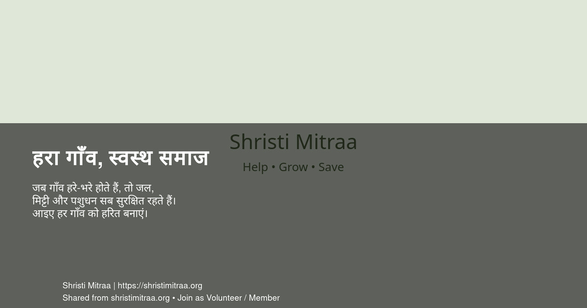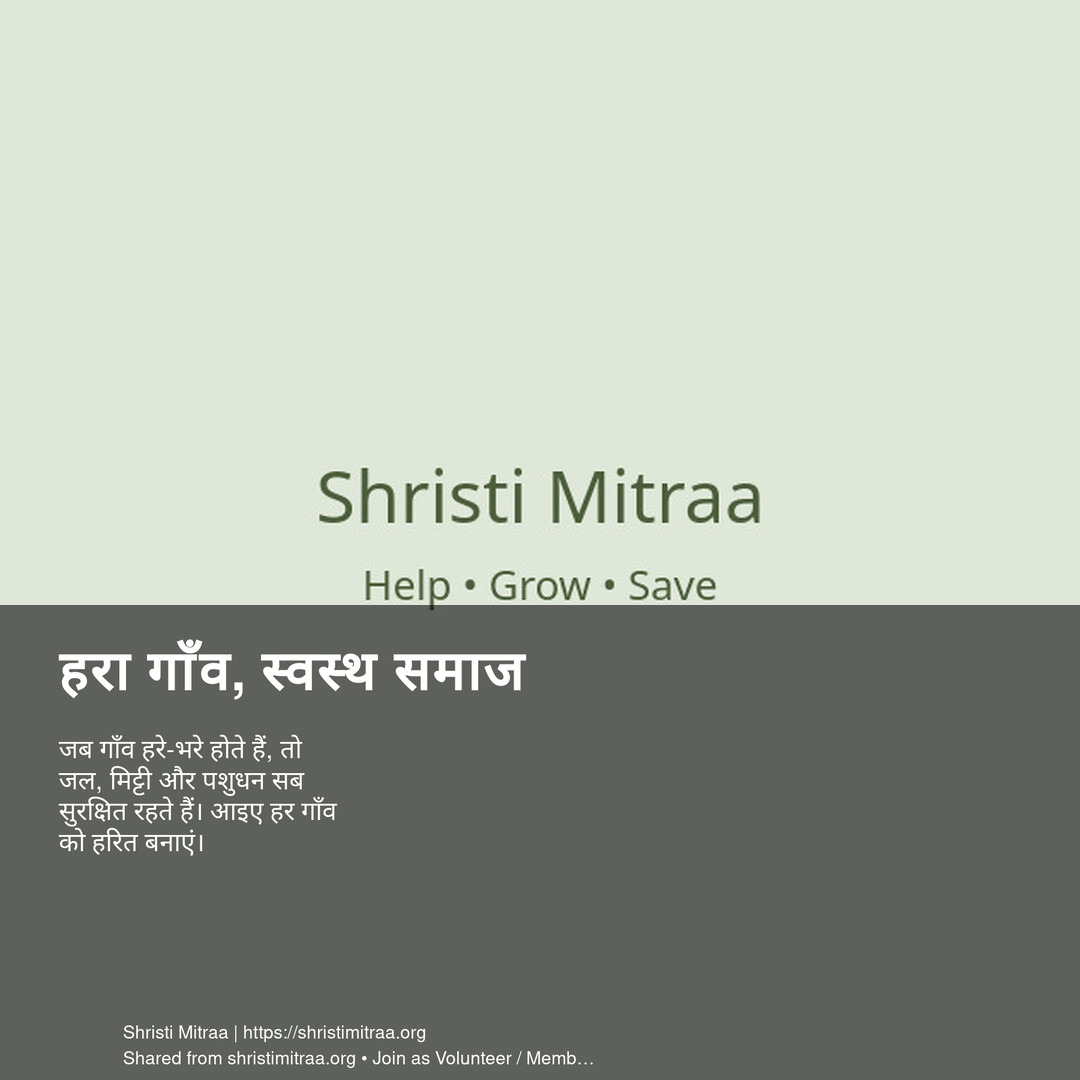 जब गाँव हरे-भरे होते हैं, तो जल, मिट्टी और पशुधन सब सुरक्षित रहते हैं। आइए हर गाँव को हरित बनाएं।