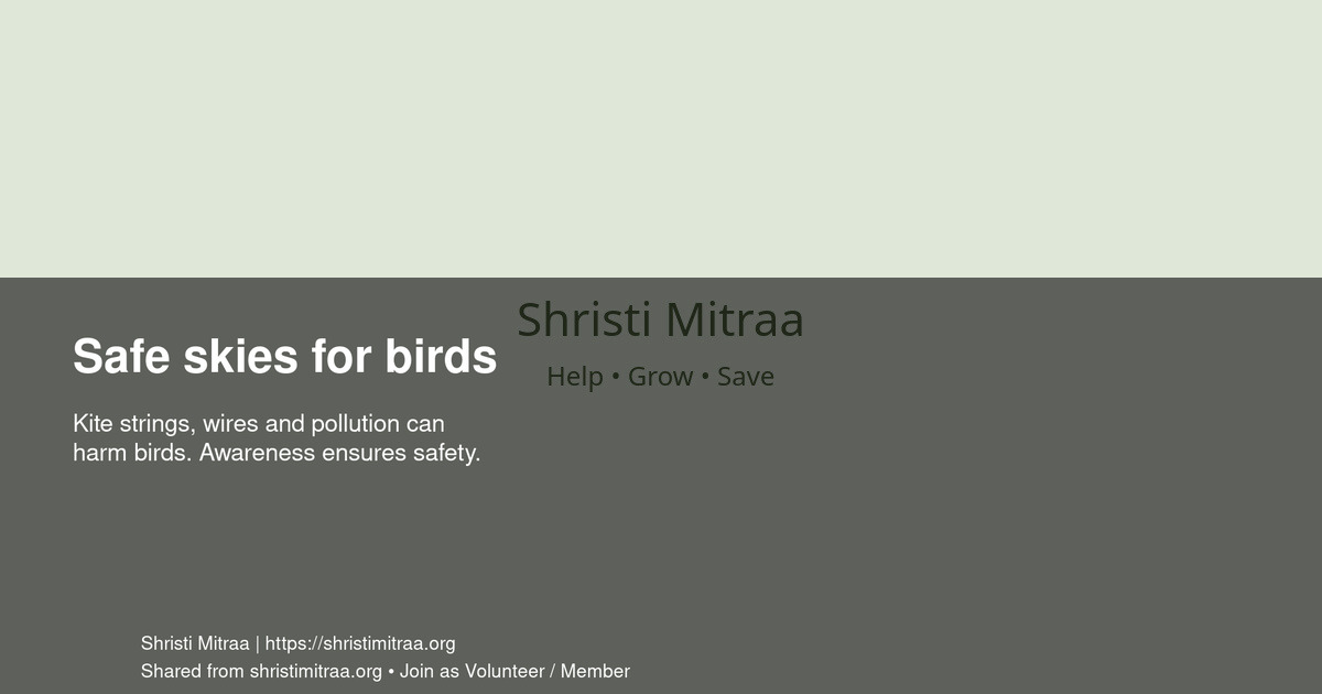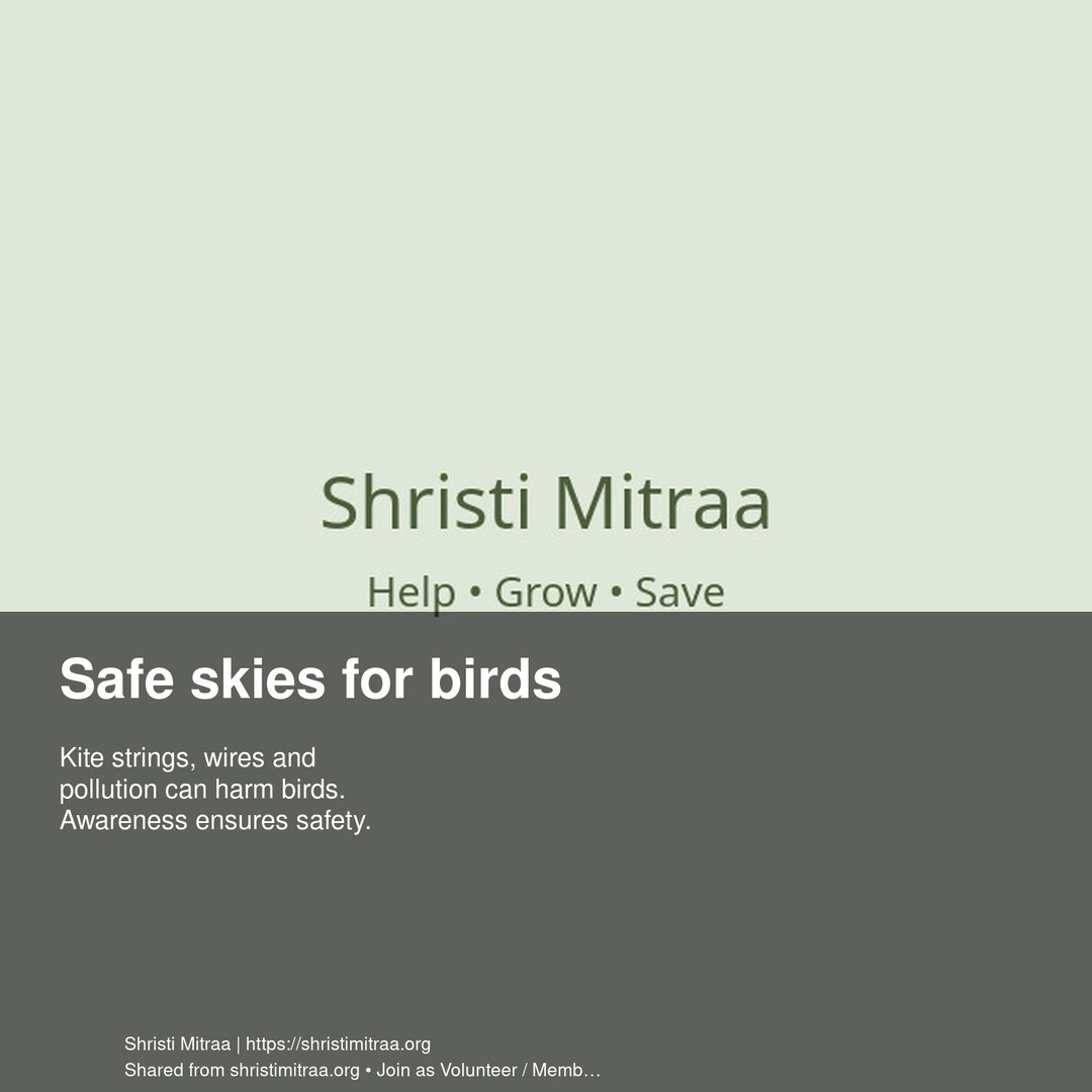 Kite strings, wires and pollution can harm birds. Awareness ensures safety.