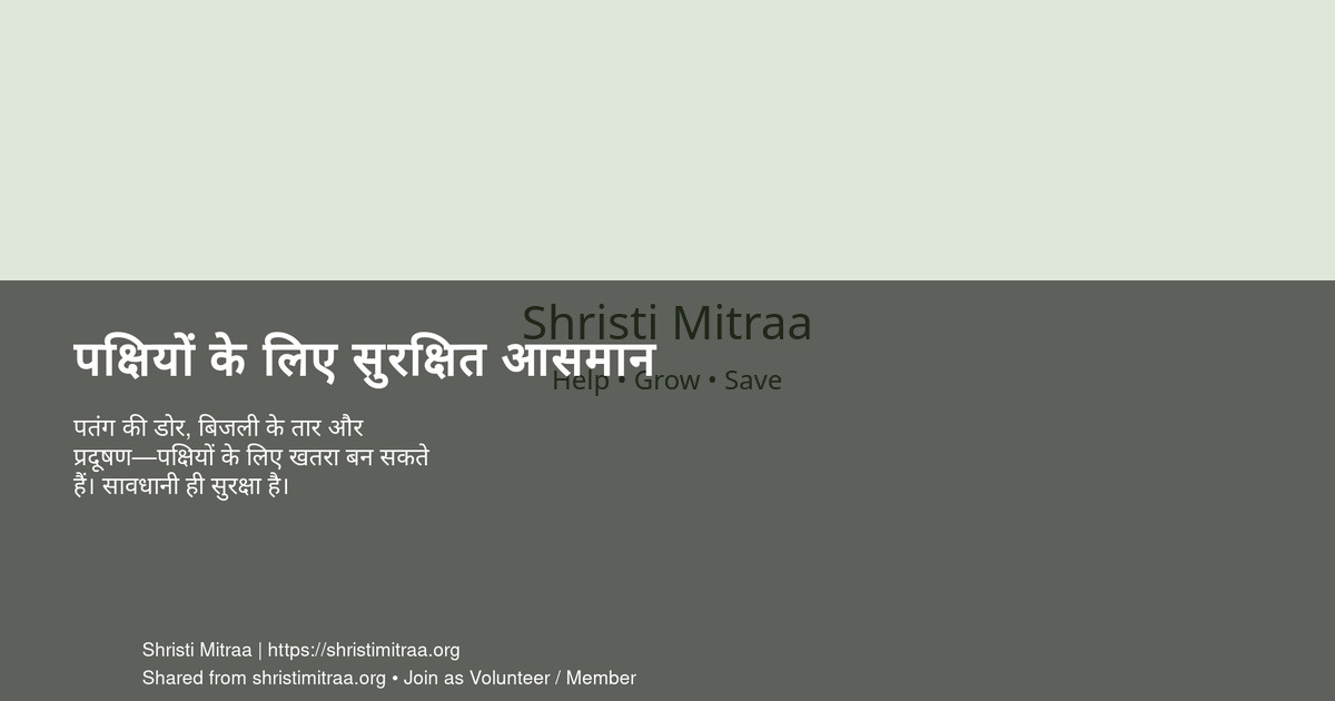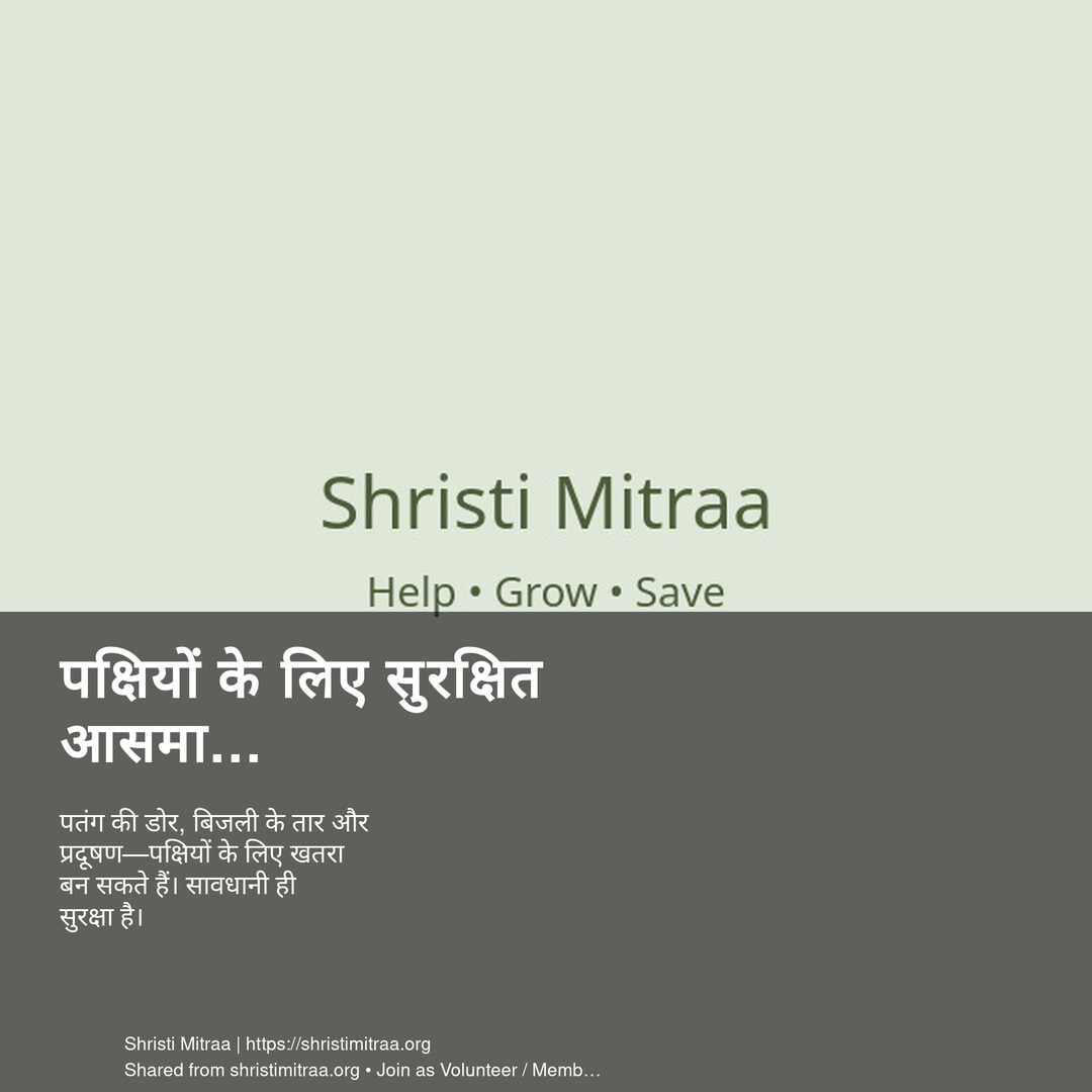 पतंग की डोर, बिजली के तार और प्रदूषण—पक्षियों के लिए खतरा बन सकते हैं। सावधानी ही सुरक्षा है।