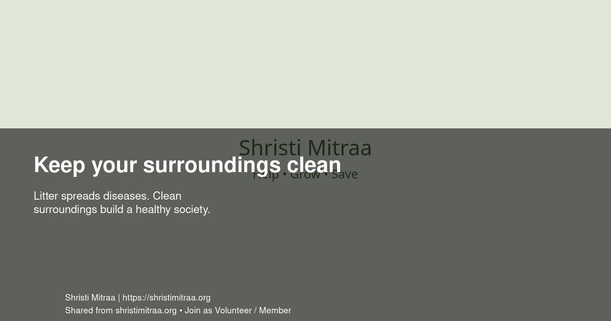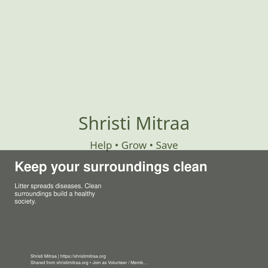 Litter spreads diseases. Clean surroundings build a healthy society.