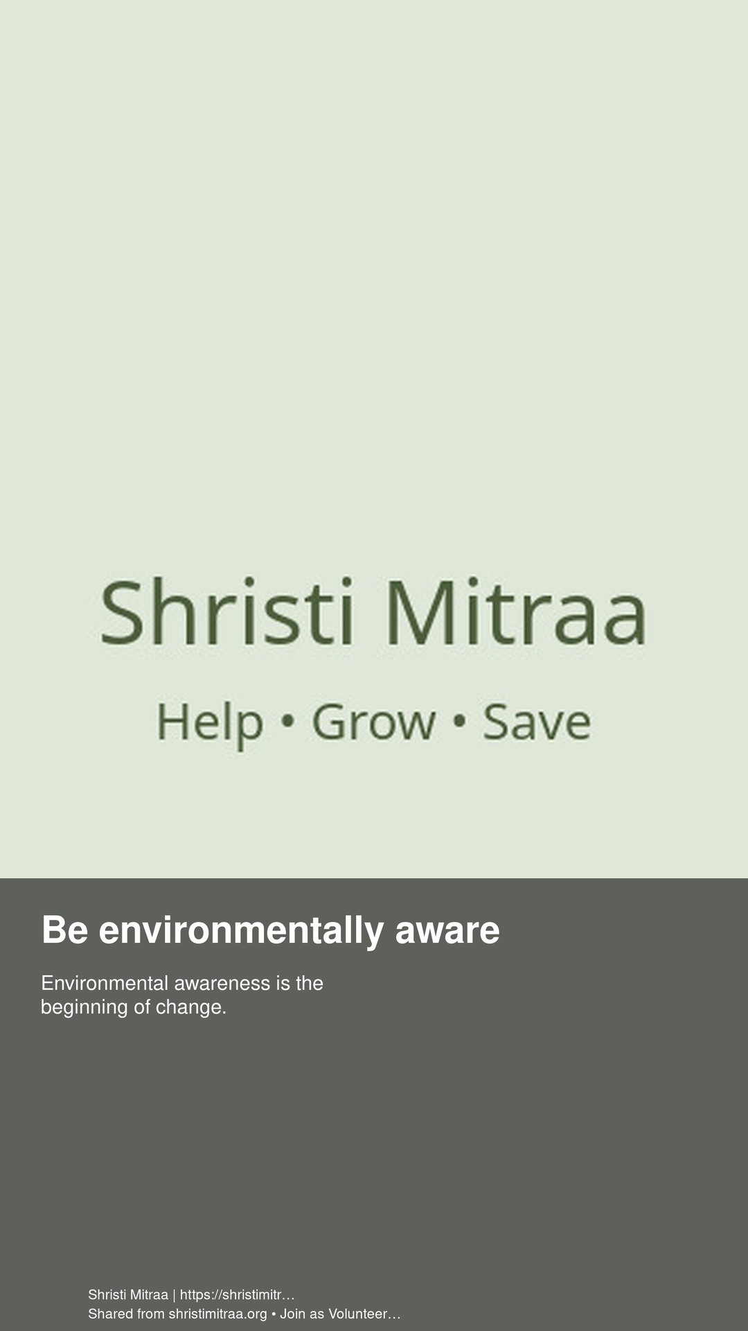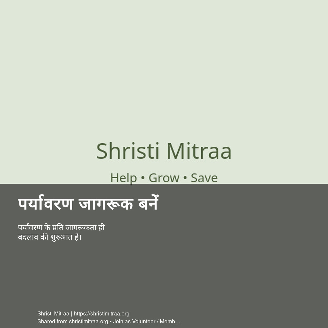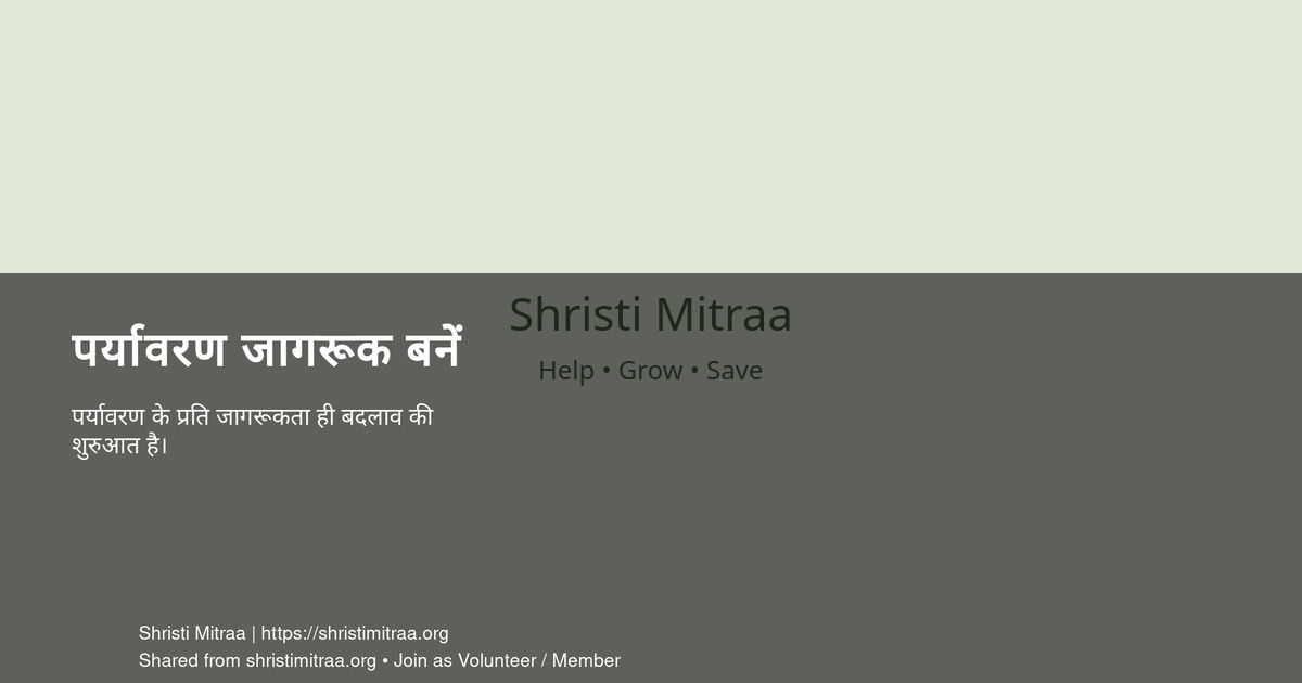 पर्यावरण के प्रति जागरूकता ही बदलाव की शुरुआत है।